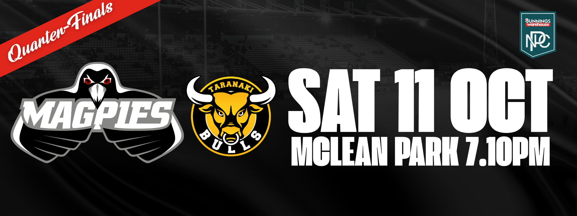 SATURDAY 11TH OCTOBER - MAGPIES V TARANAKI 7.10PM - TICKETS ON SALE TUESDAY 10AM!